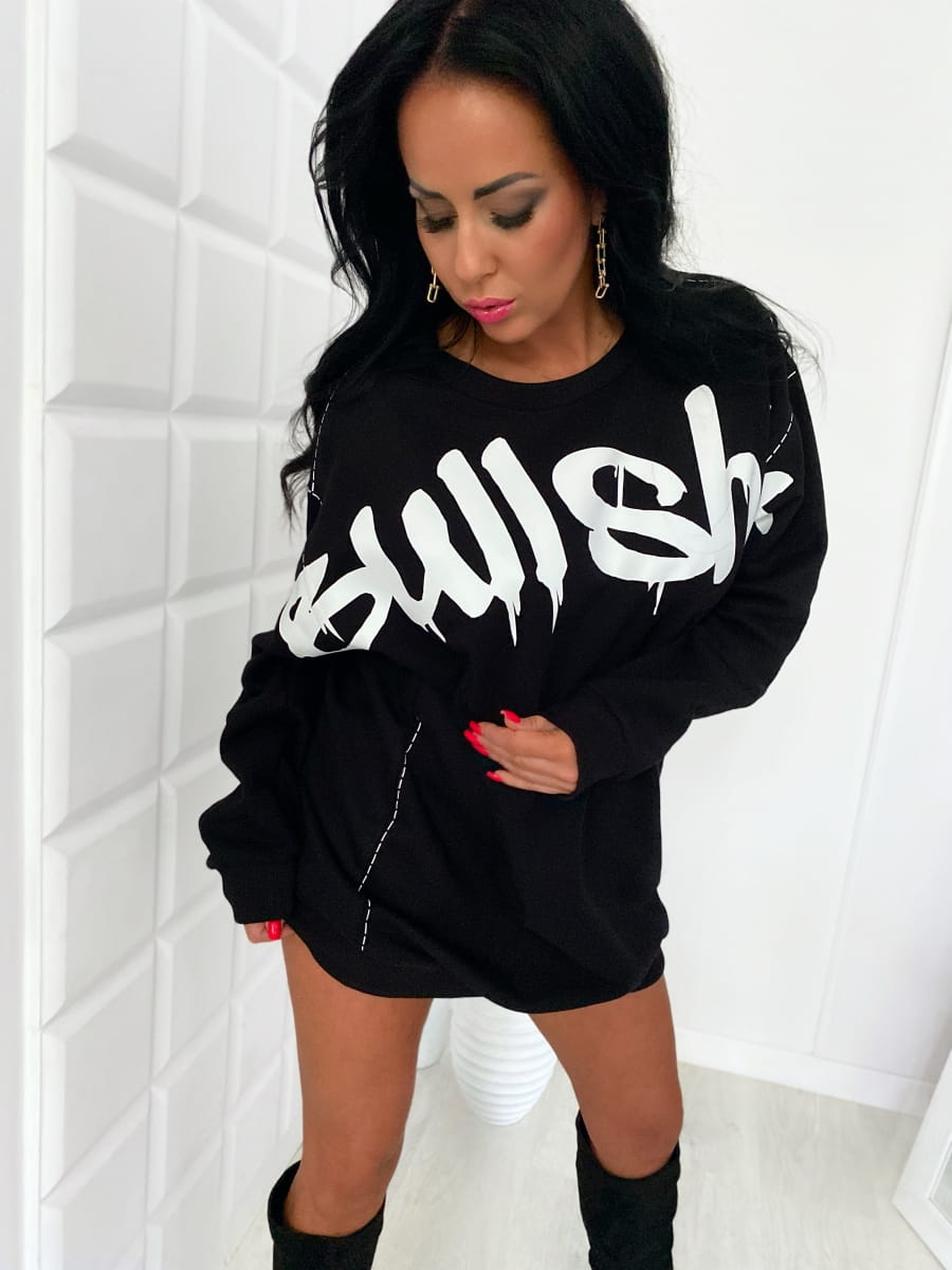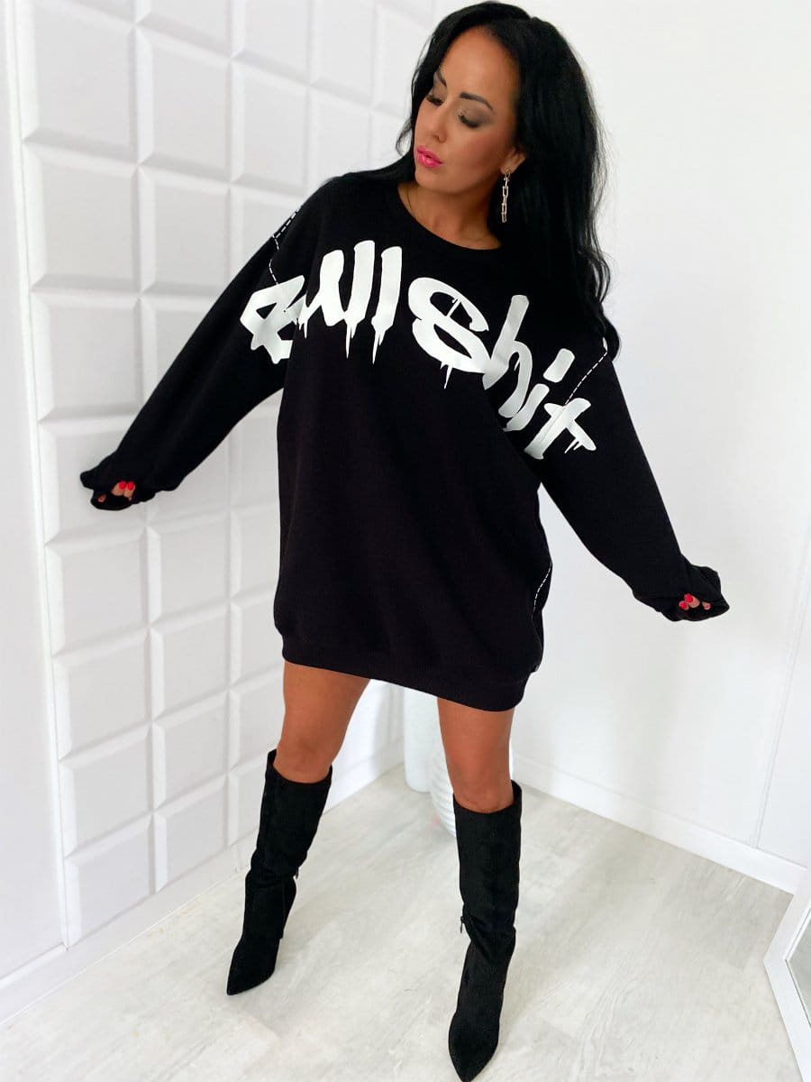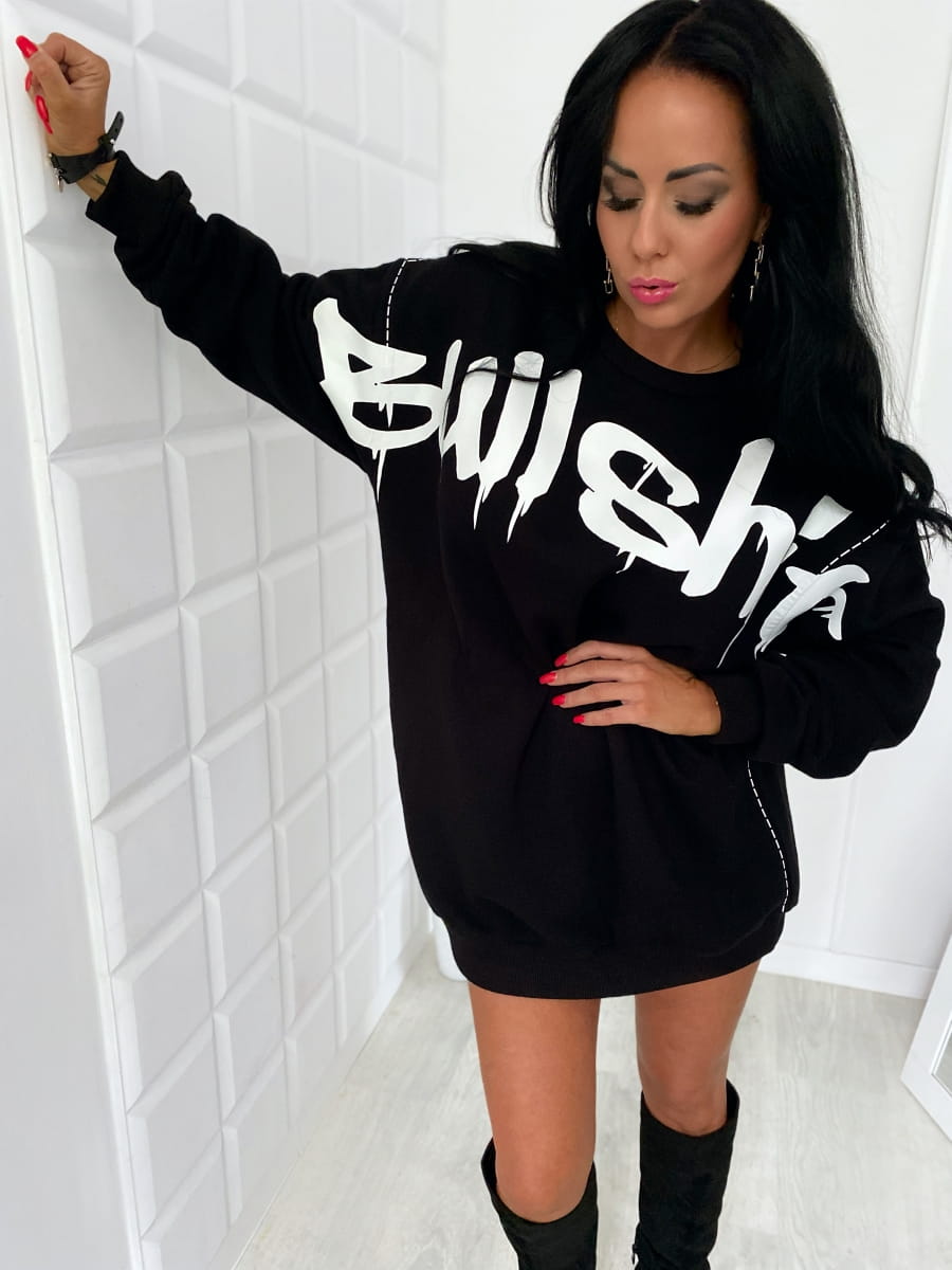 Bluza damska oversize Bullshit – czarna, dłuższa, z nadrukiem | LipMar fashion