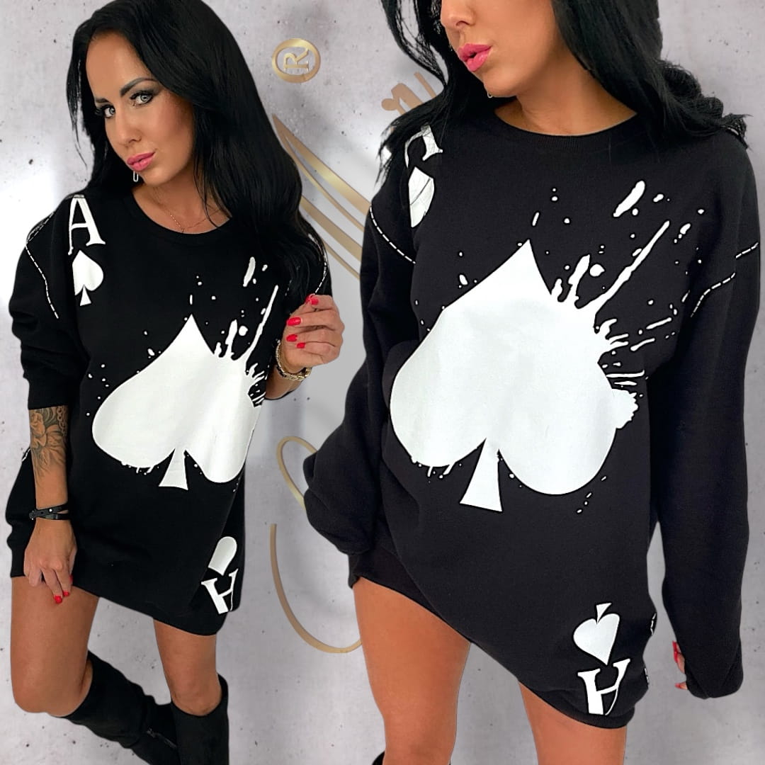 Tak – krój jest oversize, luźny i dłuższy. Można ją nosić jako klasyczną bluzę lub sukienkę czy tunikę.