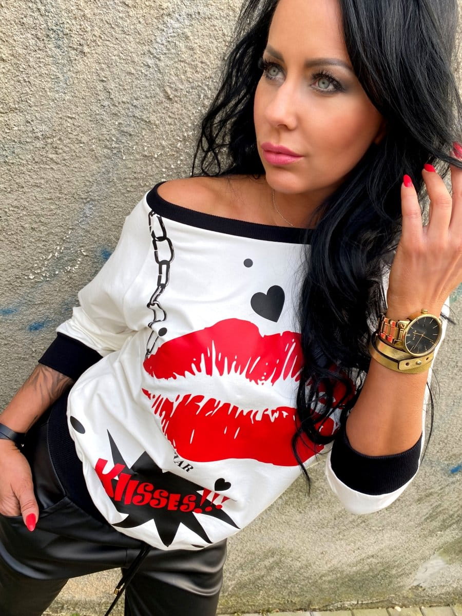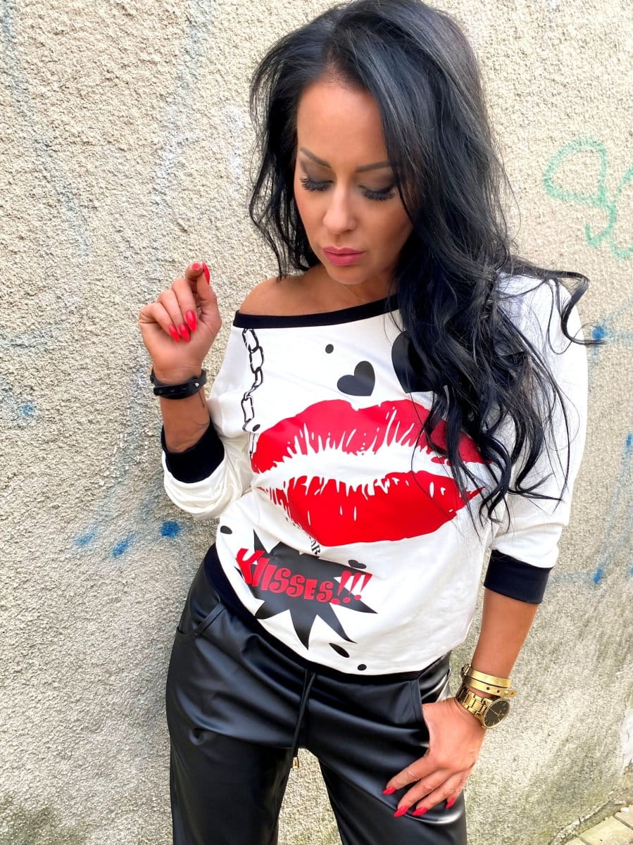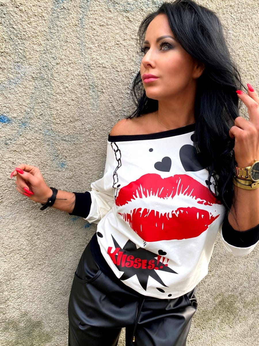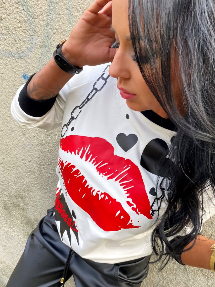 Bluza z nadrukiem usta kiss ecru