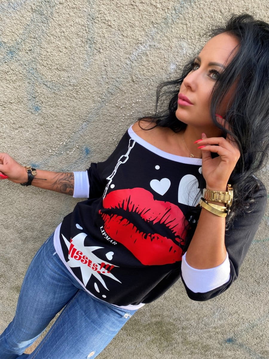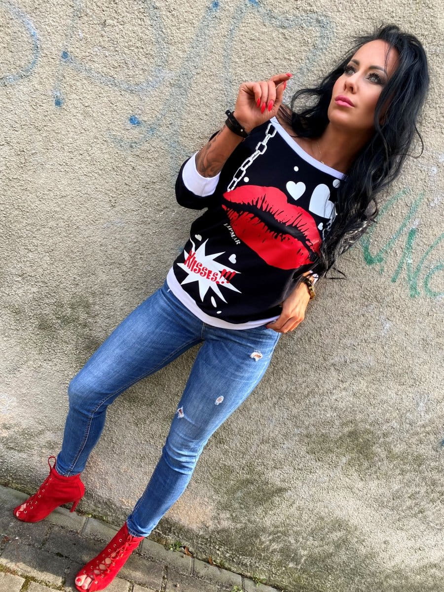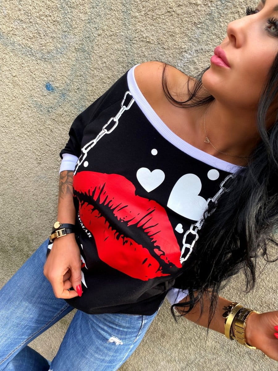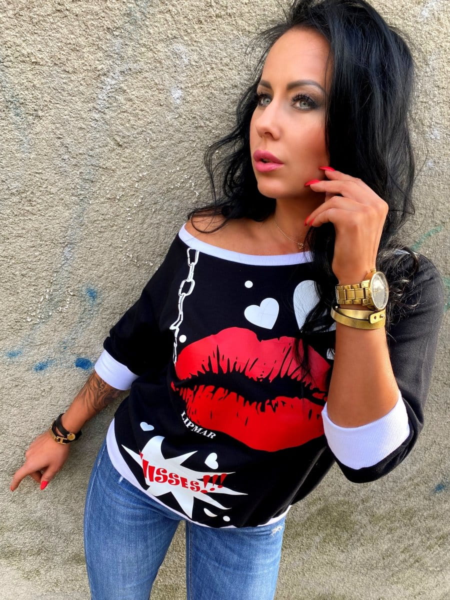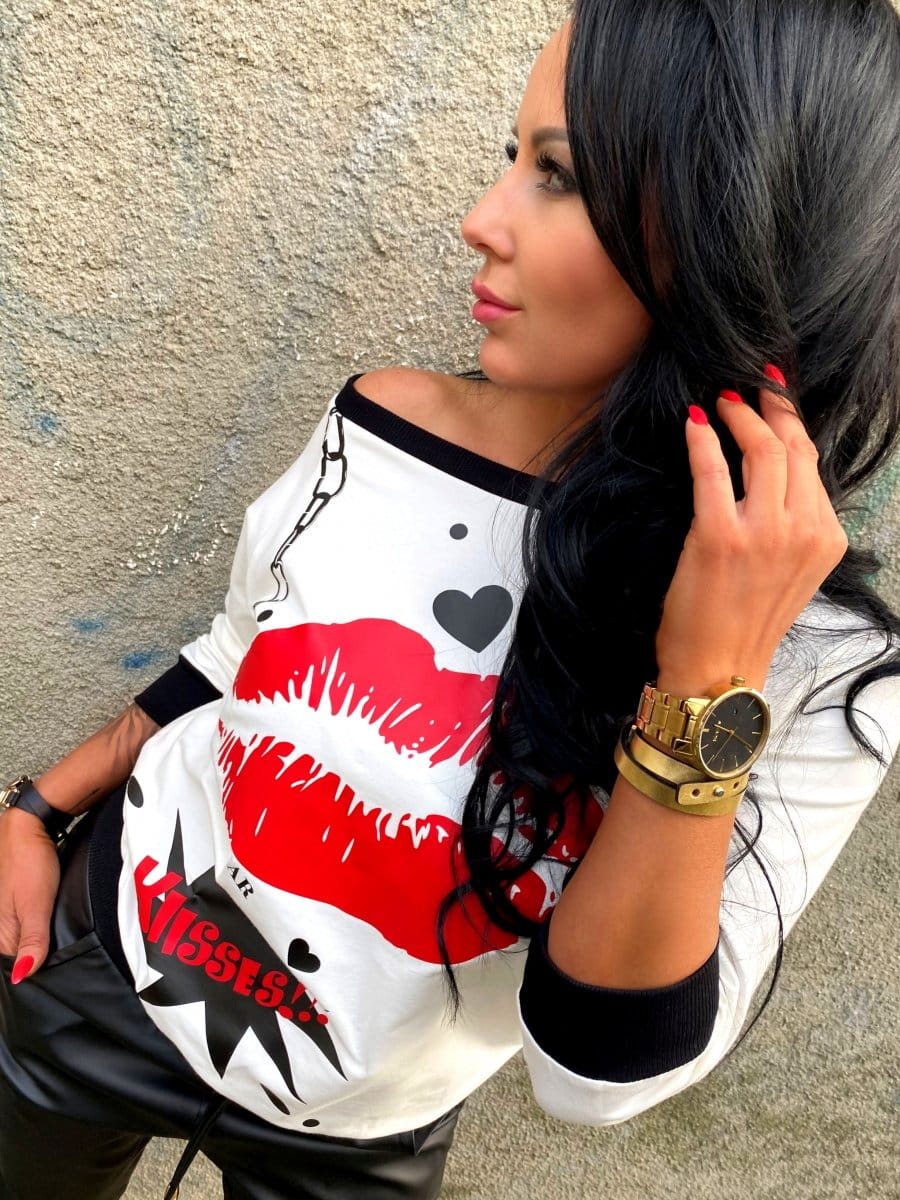 Bluza z nadrukiem usta kiss ecru