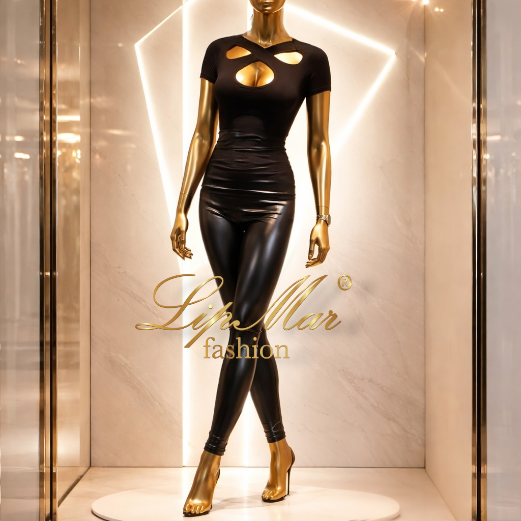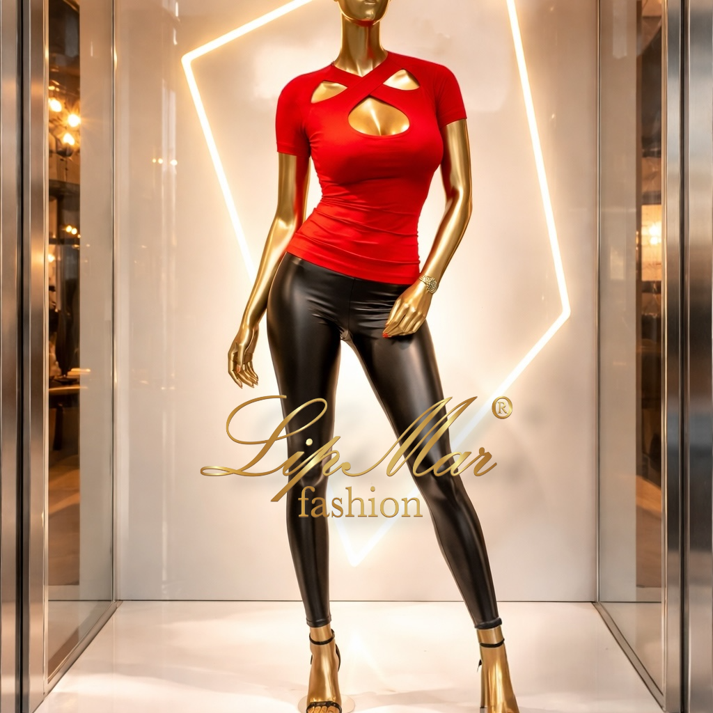 Bluzka posiada efektowne wycięcie na dekolcie, które subtelnie eksponuje biust i przyciąga uwagę. Krótki rękaw sprawia, że jest idealna na cieplejsze dni, a elastyczny materiał perfekcyjnie dopasowuje się do sylwetki, modelując ją i podkreślając kobiece kształty.