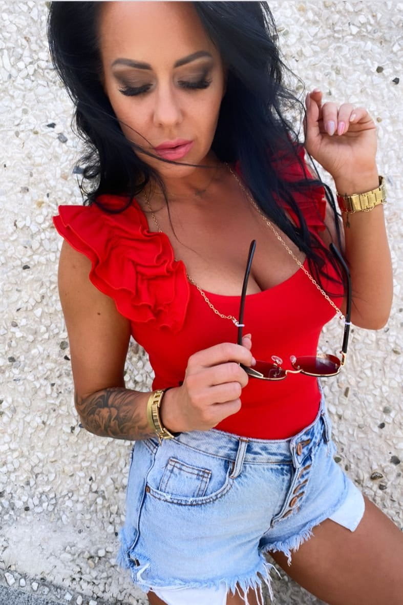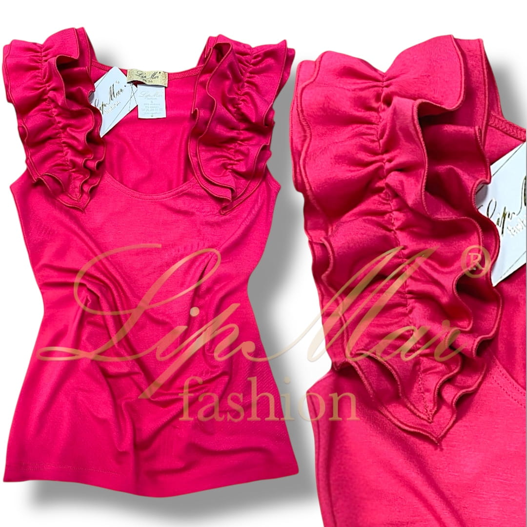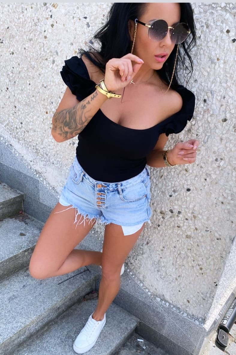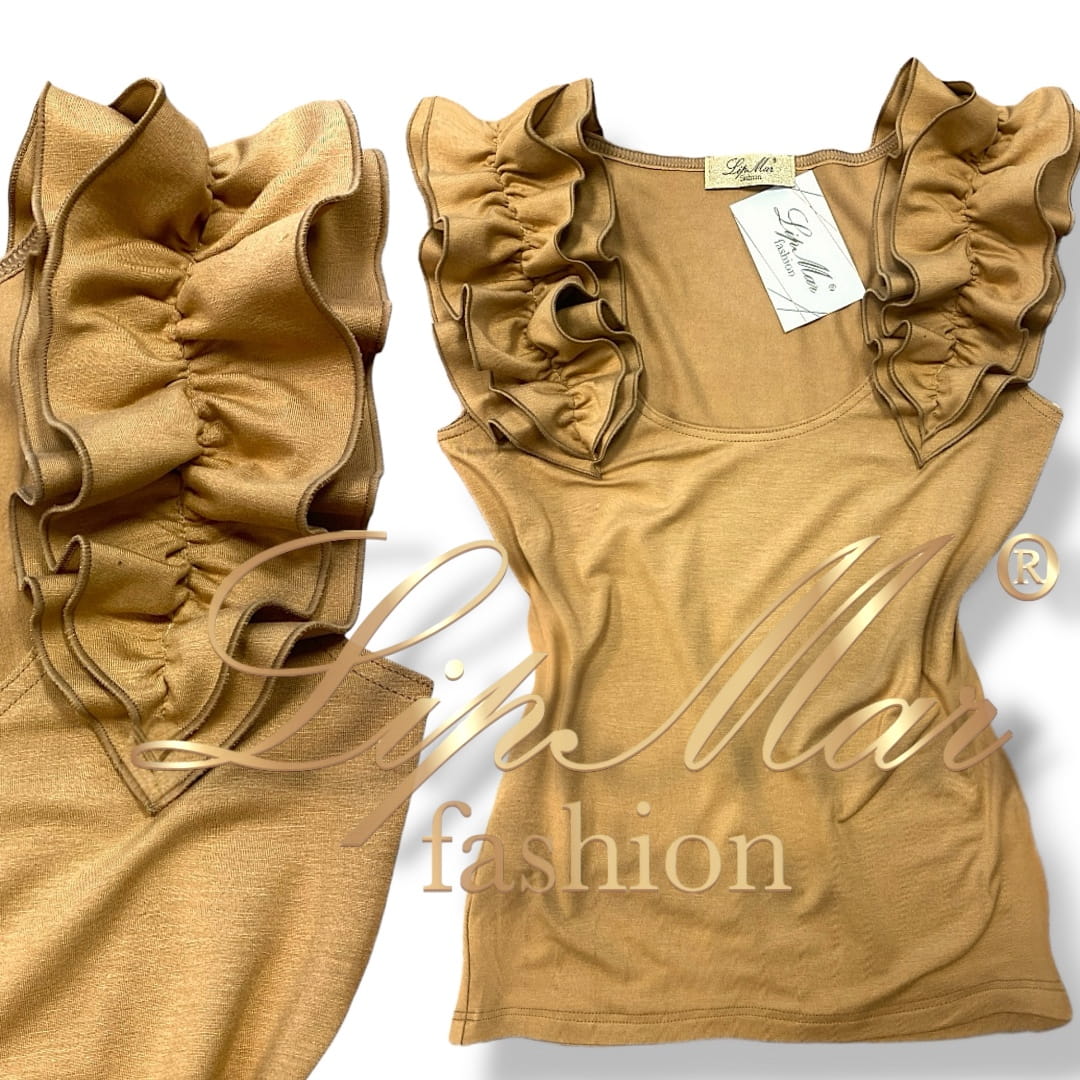 - Urocza bluzeczka z marszczeniami/falbanami na ramionach.