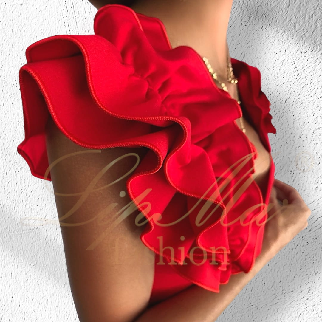 Bluzka damska z falbanami, hiszpanka z dekoltem |LipMar