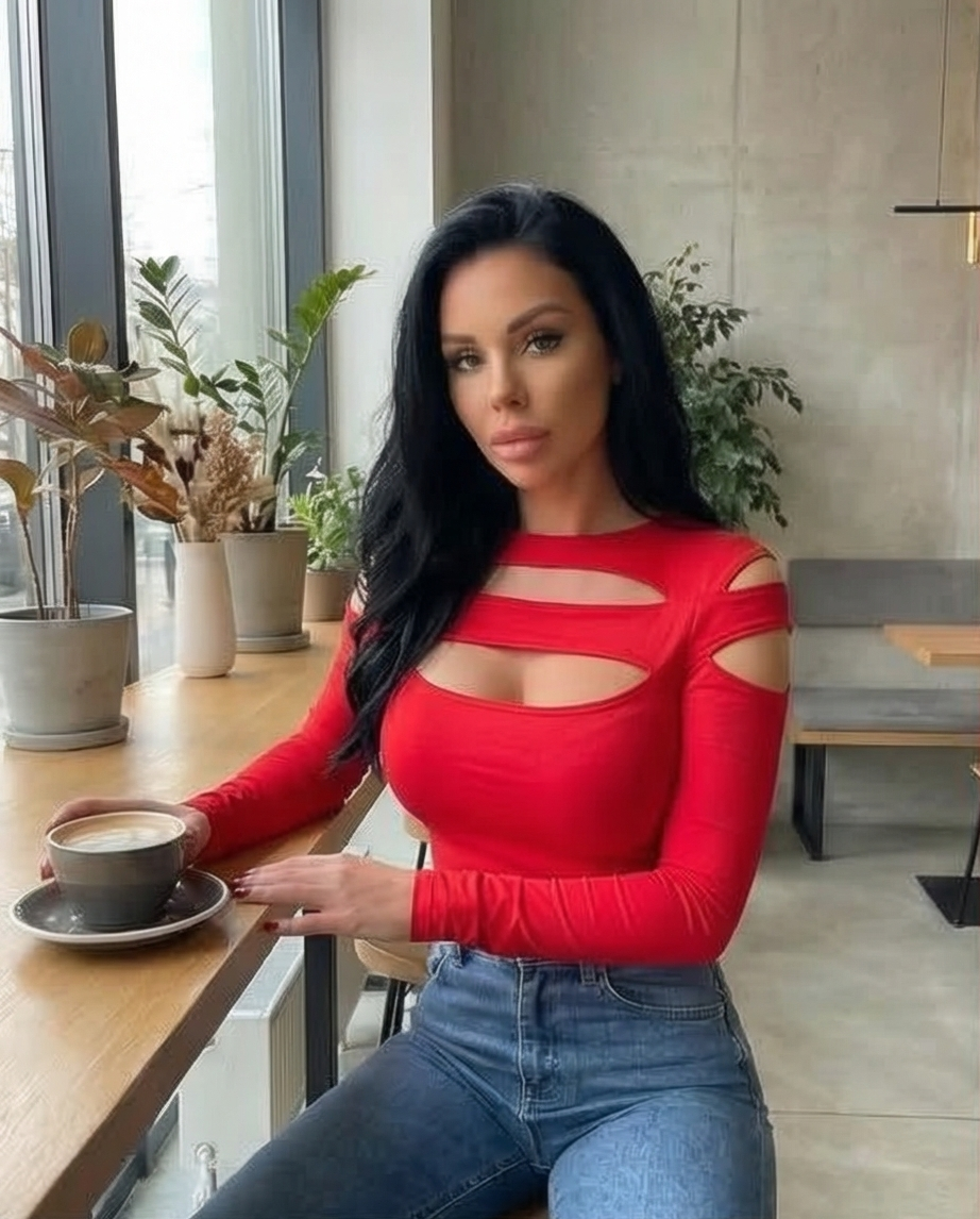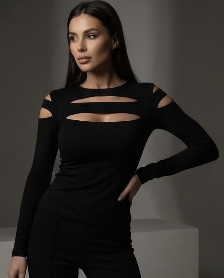 Model bluzki cut out - pęknięcia na dekolcie i rękawkach.
