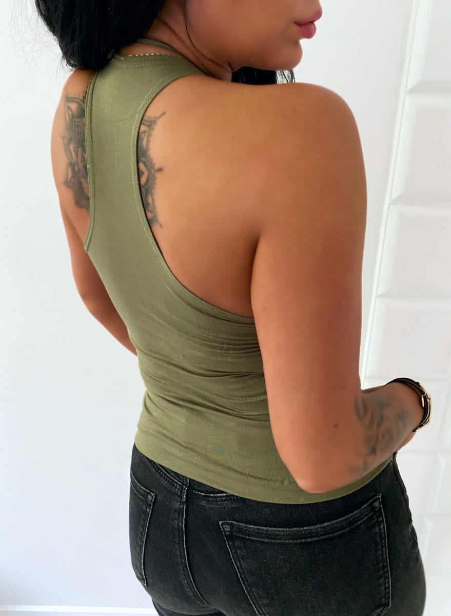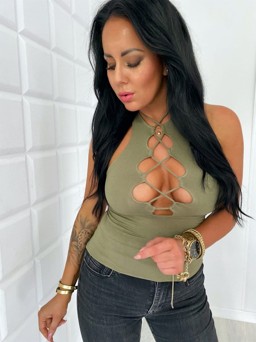 • Wiązany/sznurowany dekolt. Tył bluzeczki typu bokserka.