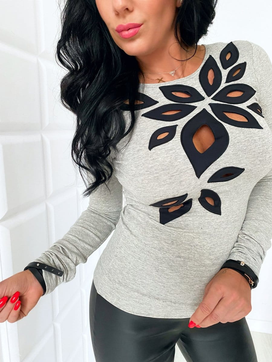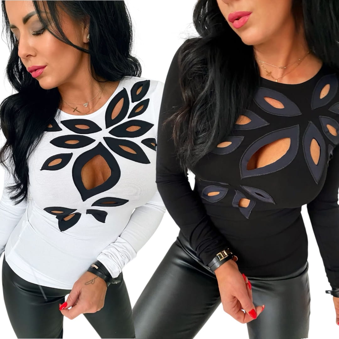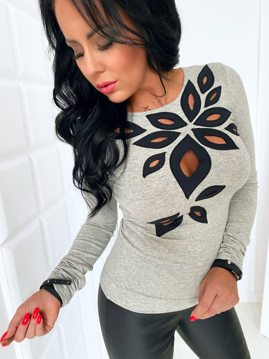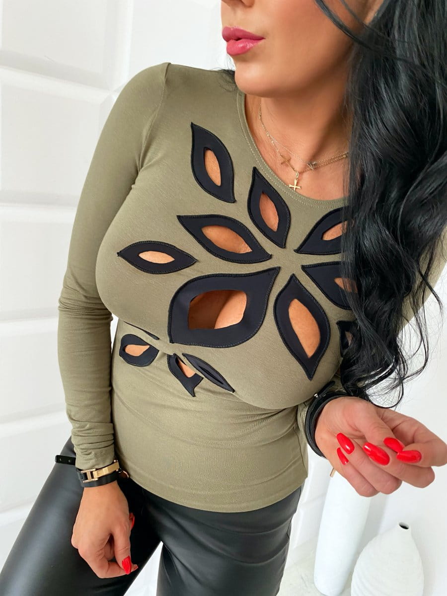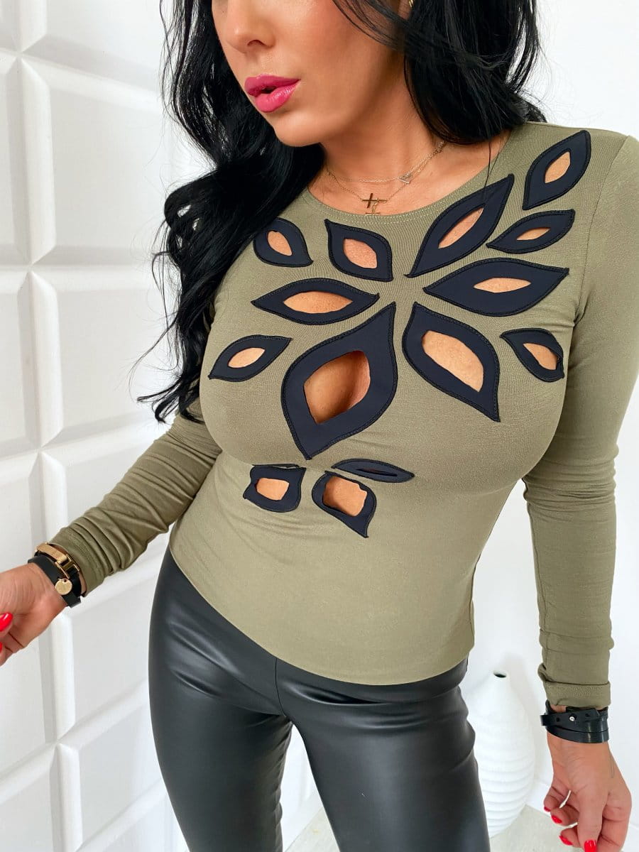 Bluzka damska zdobiona z długim rękawem liście, łezki,KOLORY