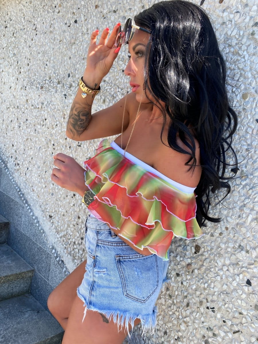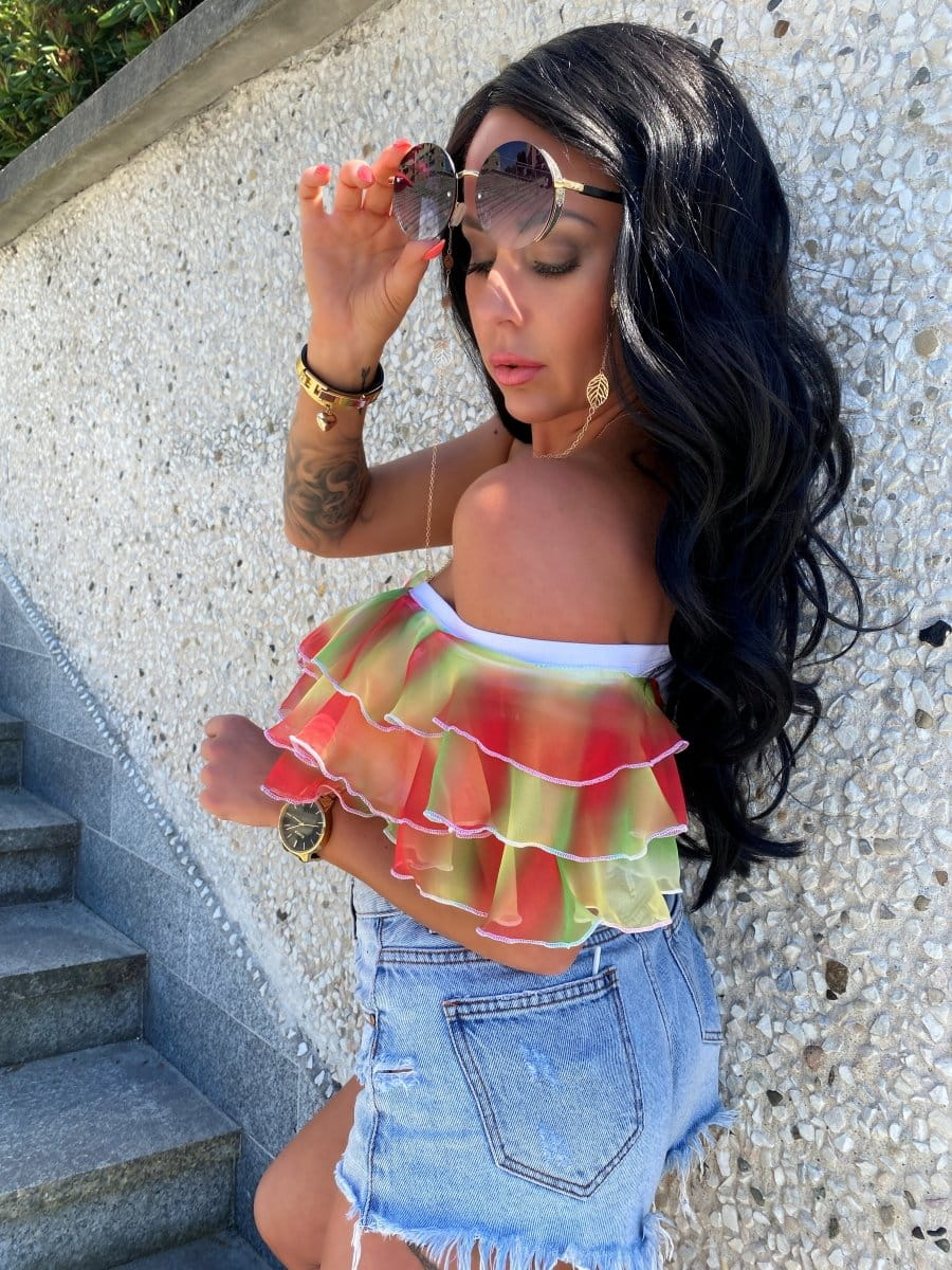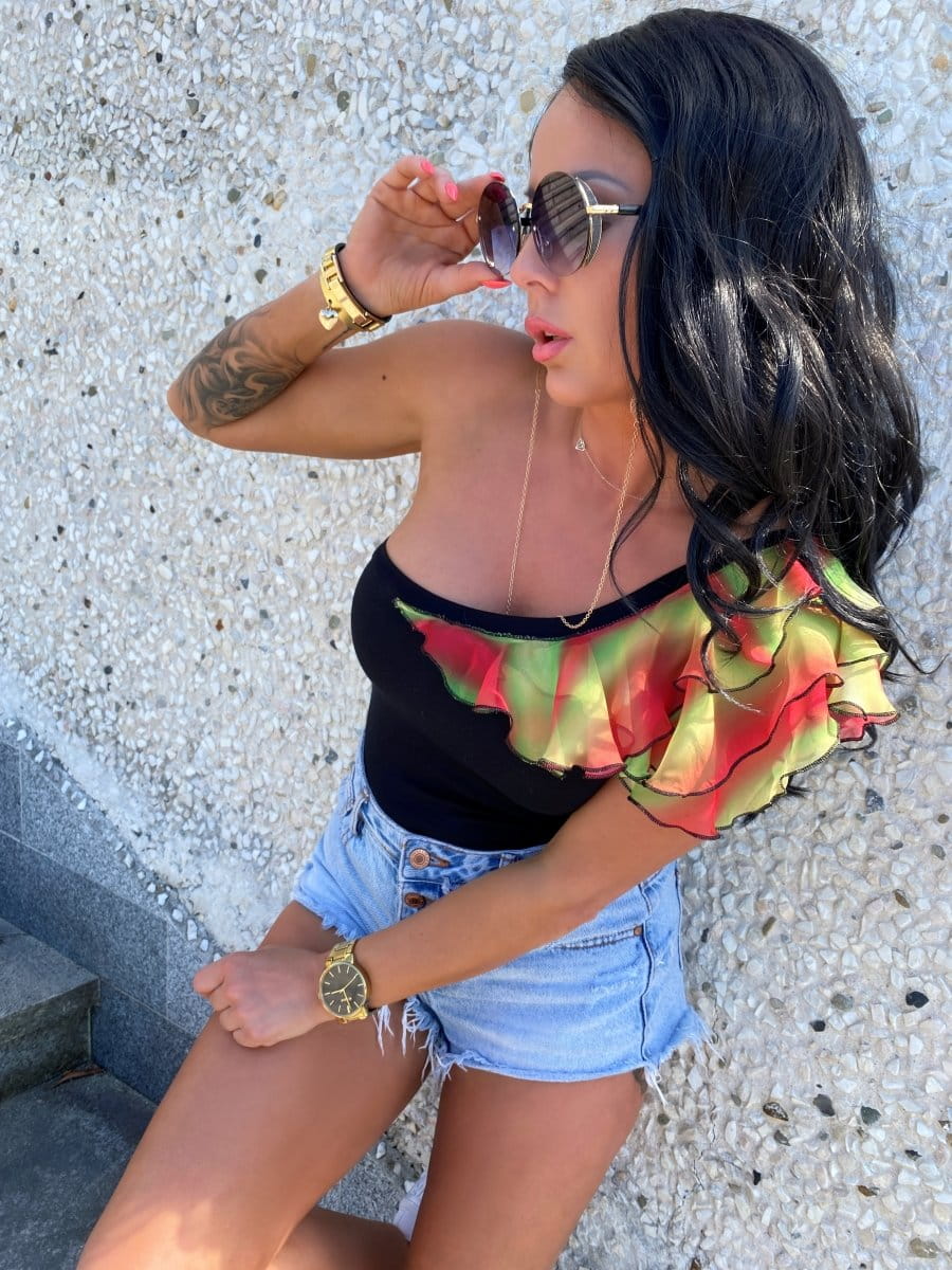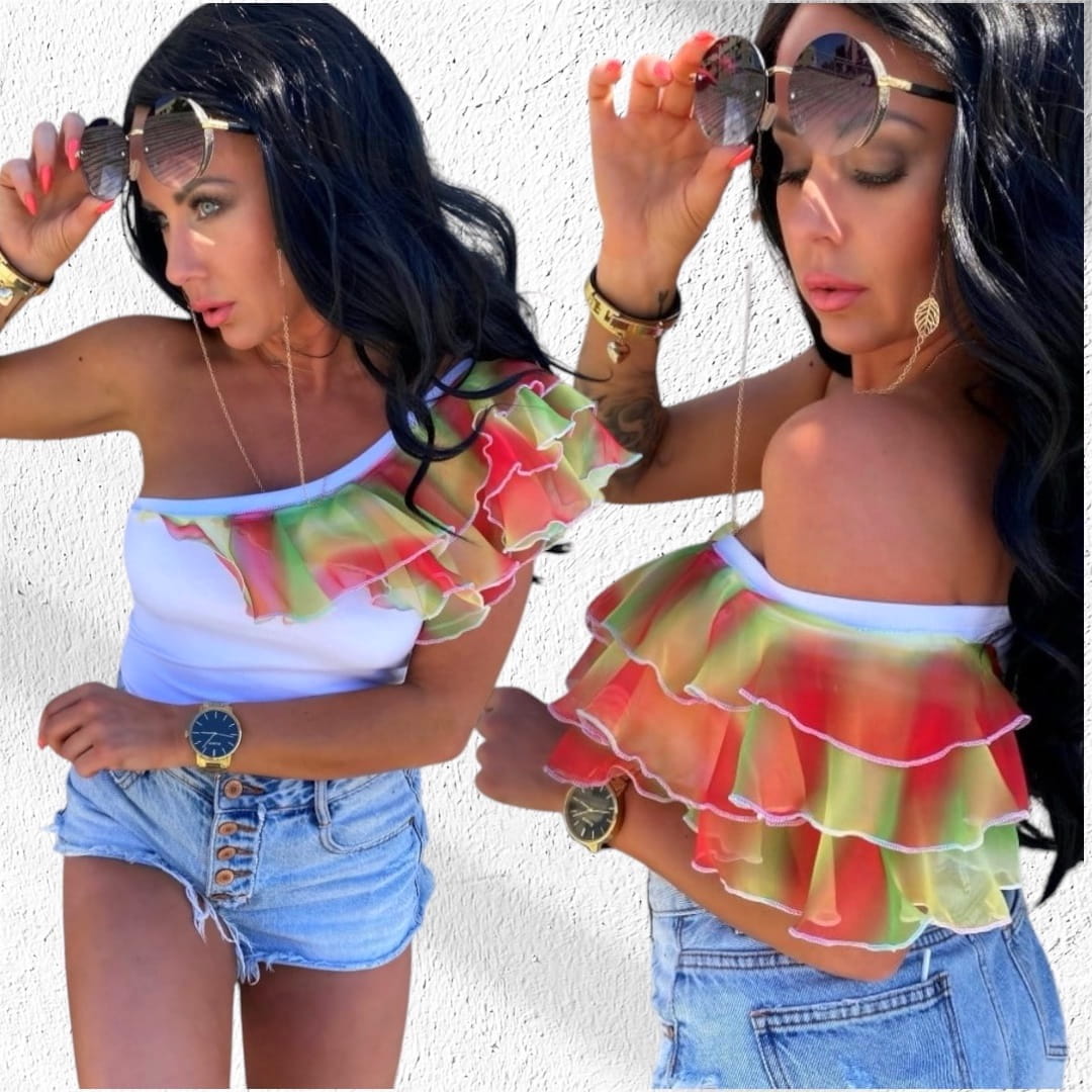 • Fantastyczna bluzeczka z falbankami na ramieniu.