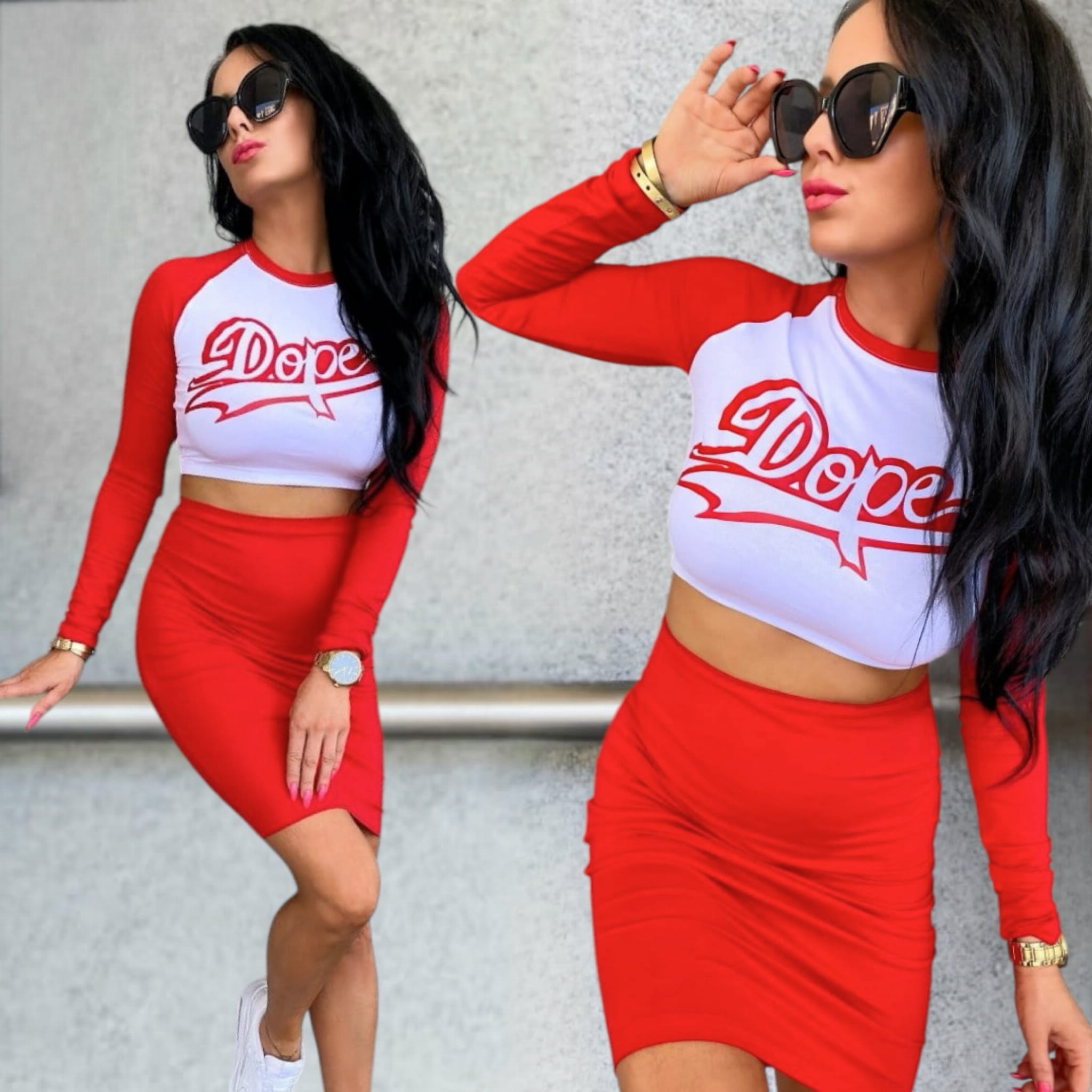 Komplet spódnica tuba + krótka bluzeczka z nadrukiem dope