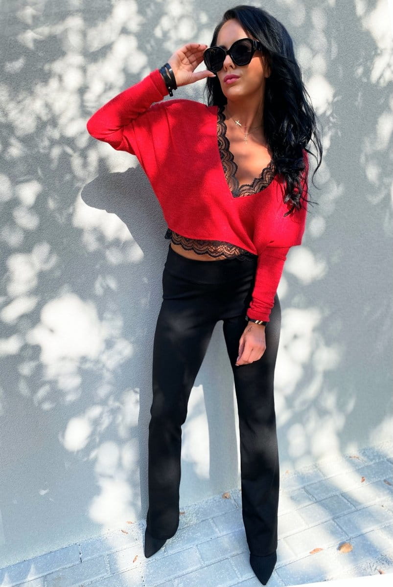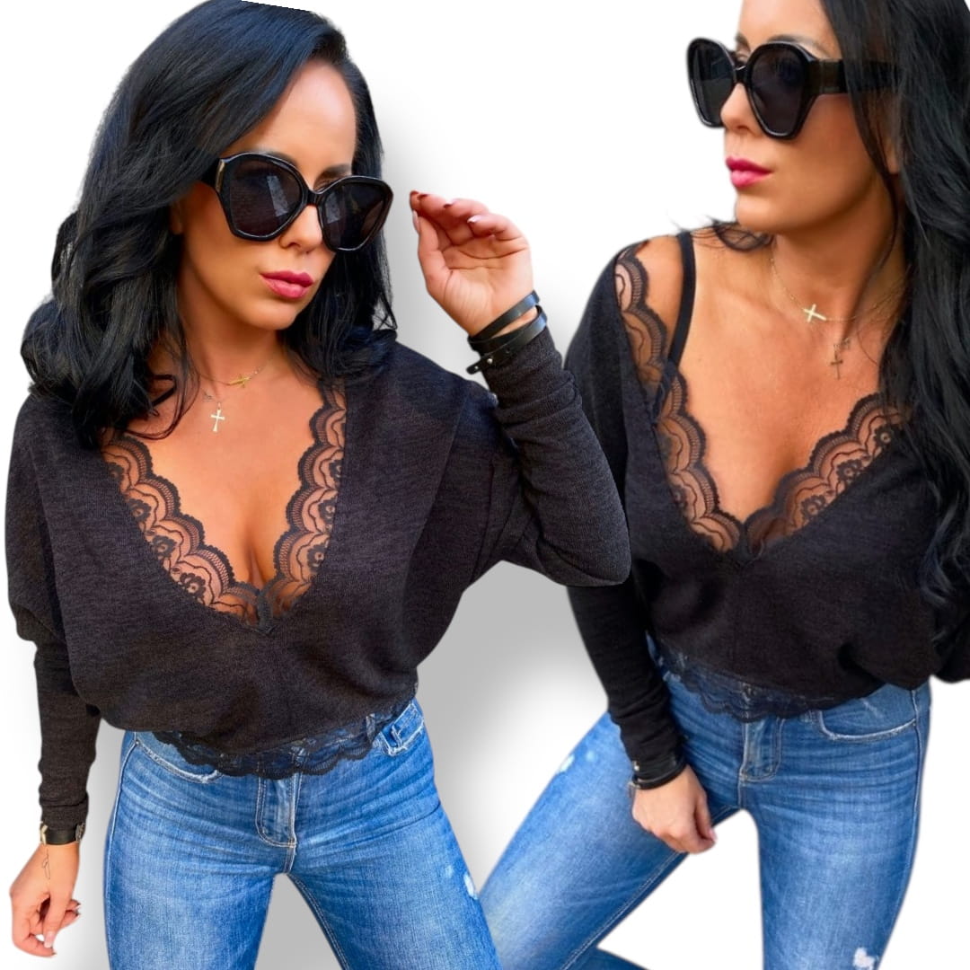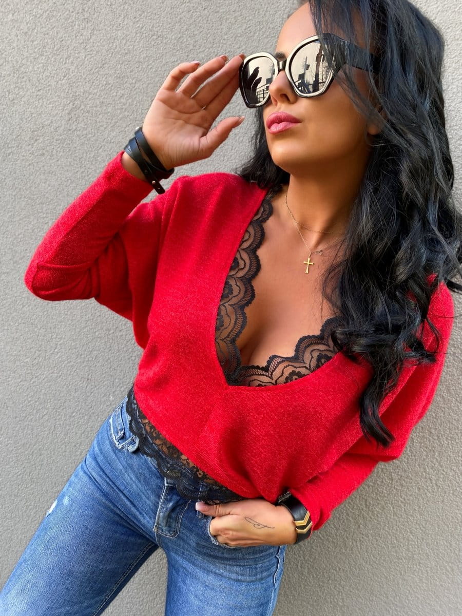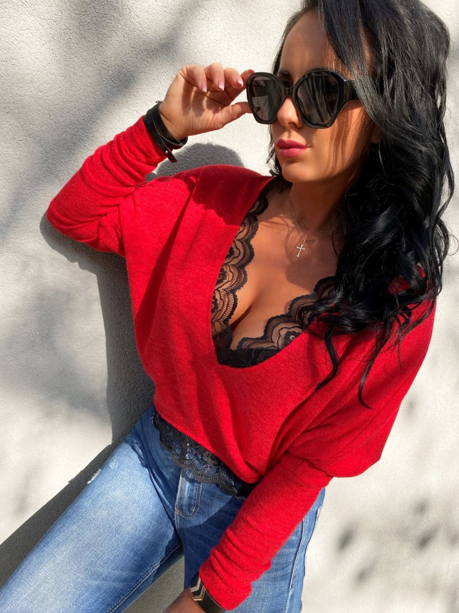 • Elegancki, kobiecy sweterek wykończony piękną koronką.