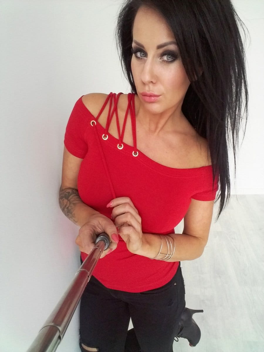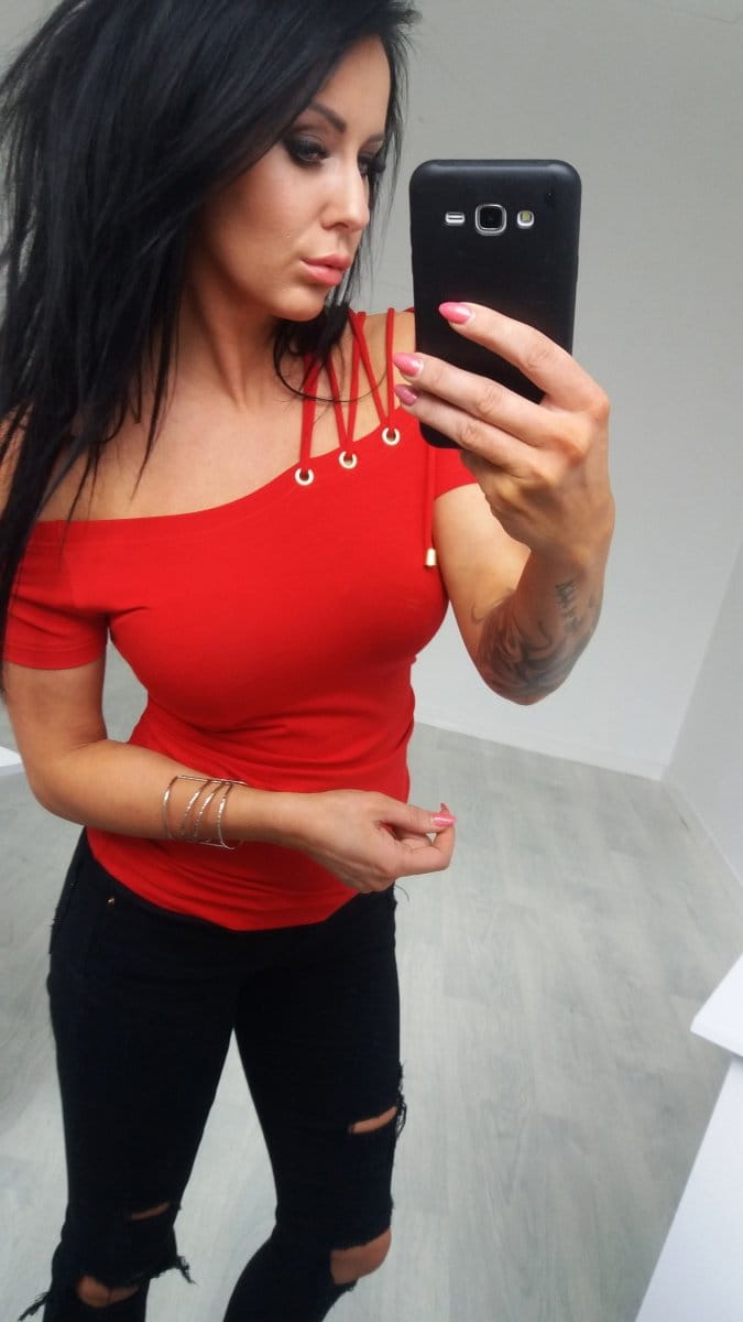 Wyprzedaż L CZERWONA Bluzka damska z wiazaniem na ramieniu