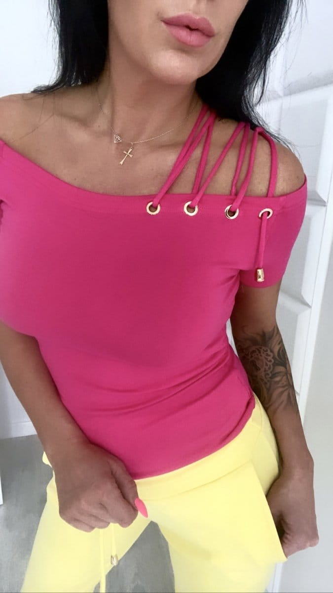 Rewelacyjna bluzeczka odkrywająca ramiona. Sexy wiązanie na jednym ramieniu.