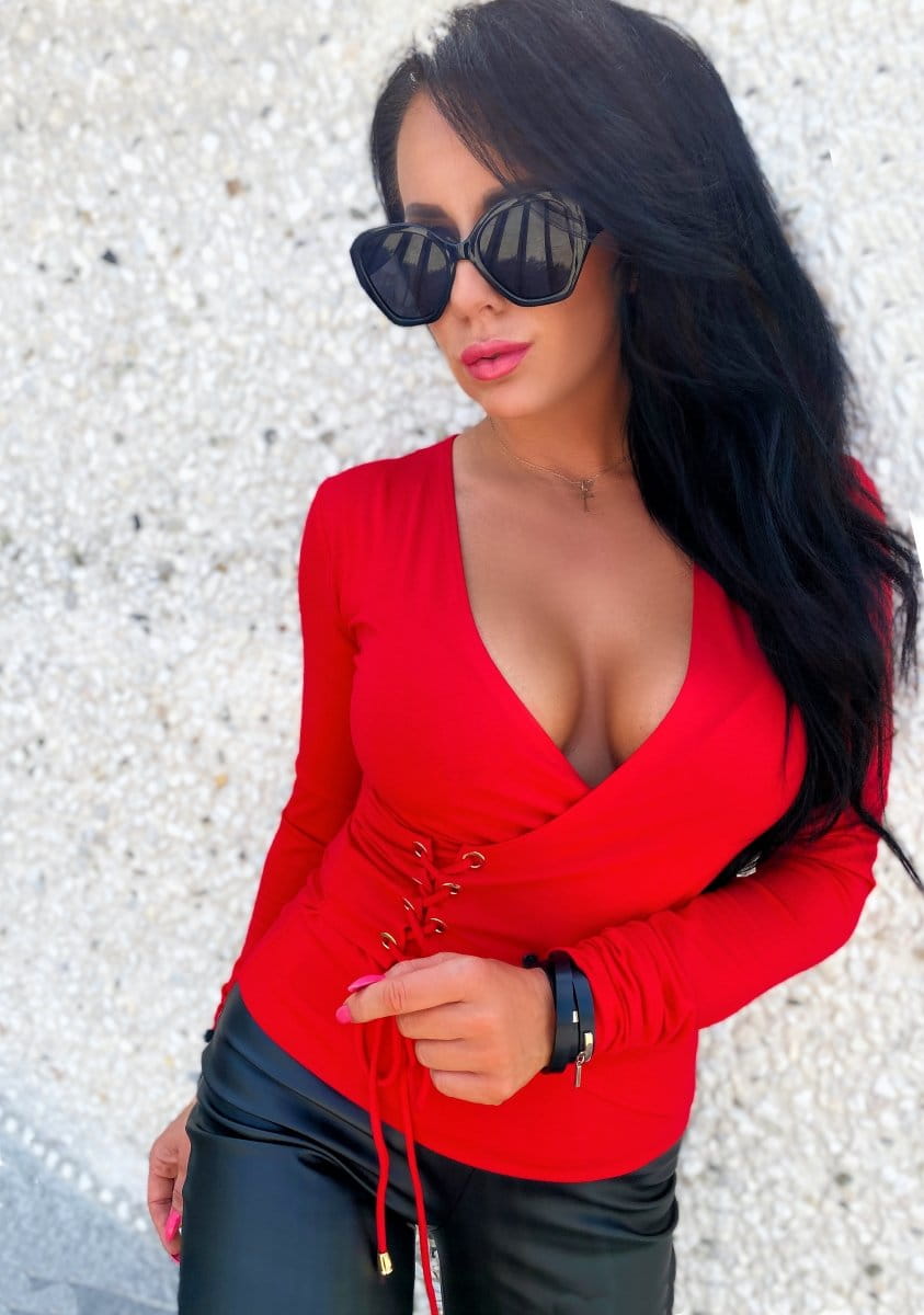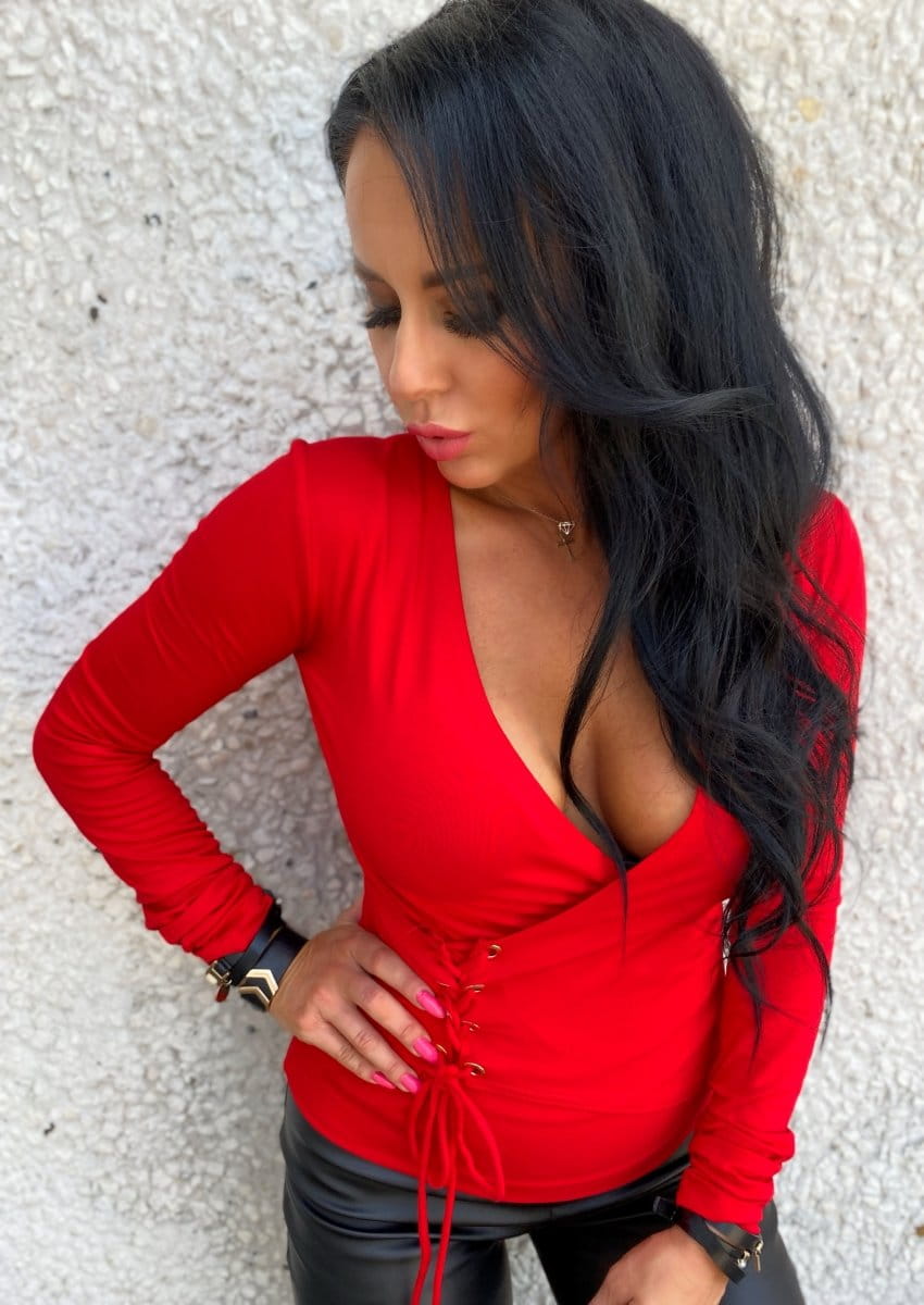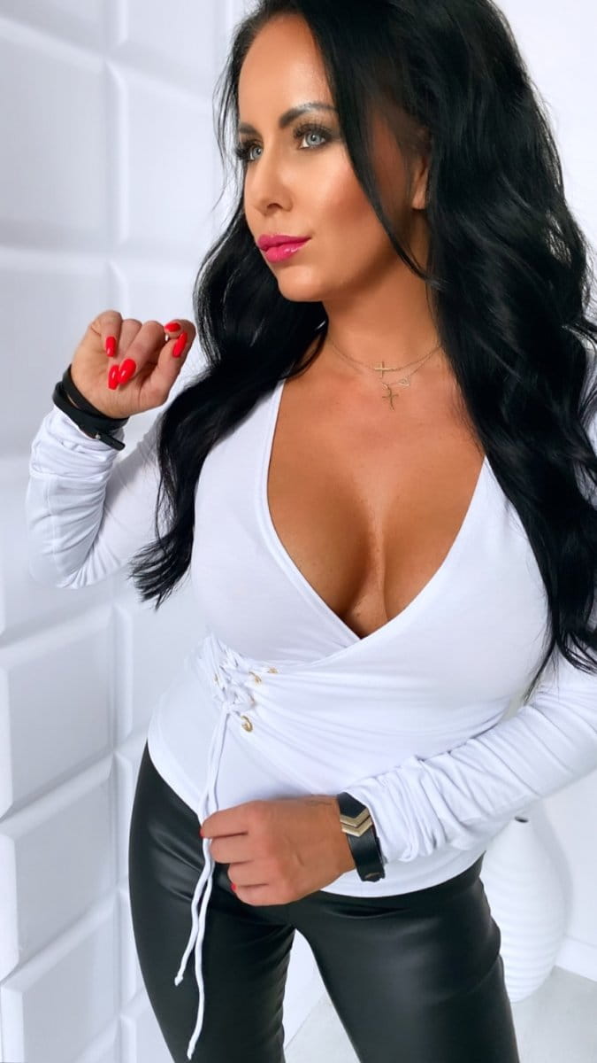 Sexowna bluzka z głębokim dekoltem w kształcie V.