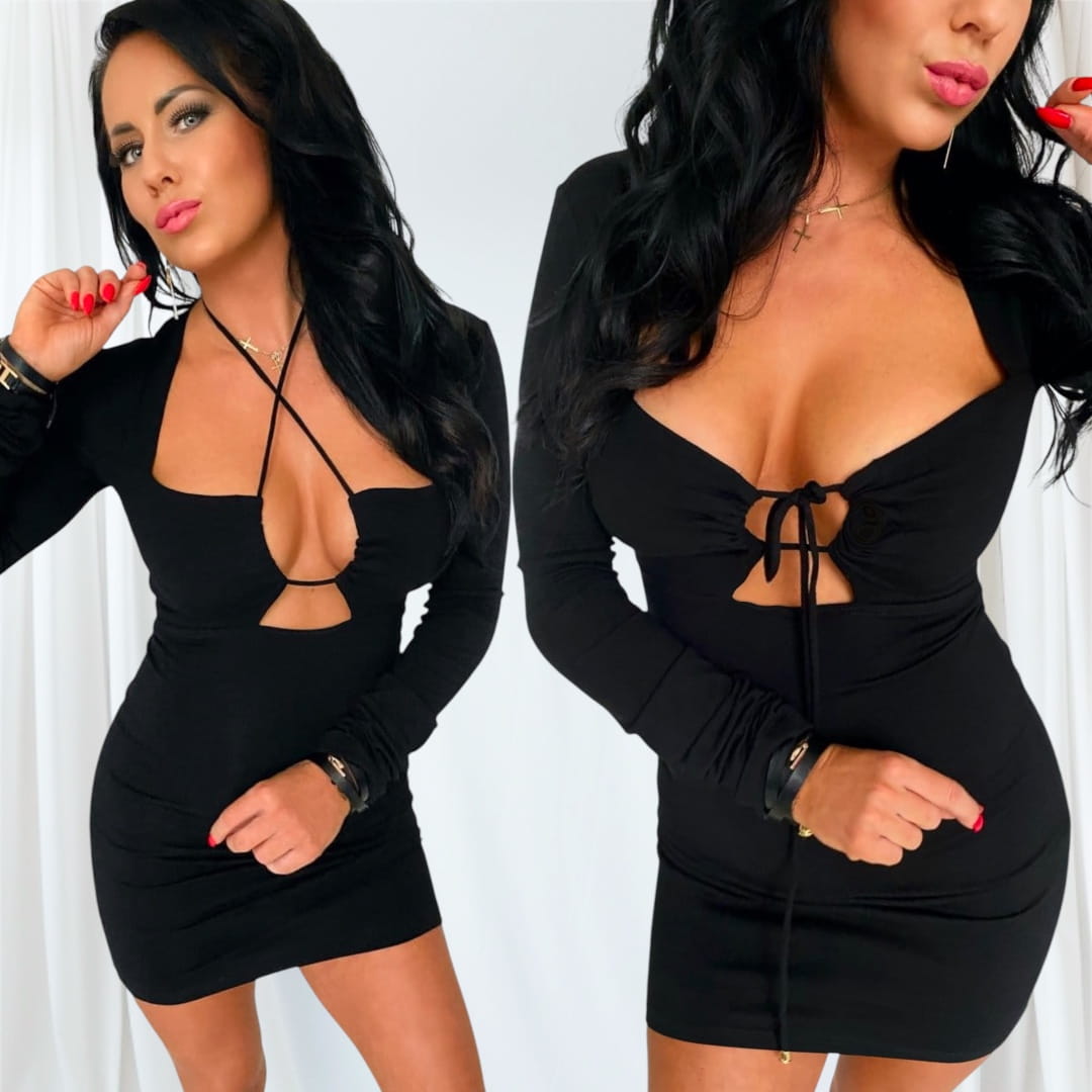 Dopasowany, elastyczny krój pięknie podkreśla sylwetkę, a wysokiej jakości materiał gwarantuje komfort noszenia.Seksowna sukienka z dekoltem – doskonała na każdą okazję: