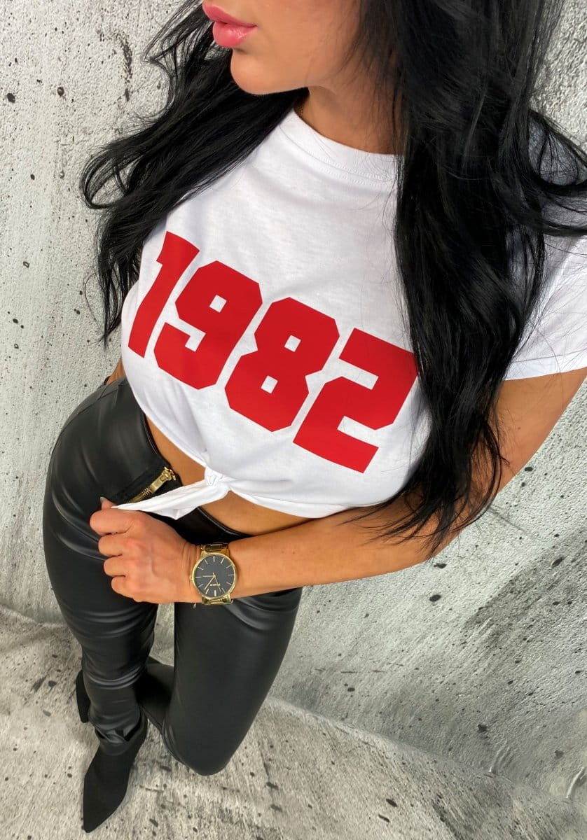 Biały T-shirt damski krótki z nadrukiem rocznika Indywidualny nadruk | LipMar