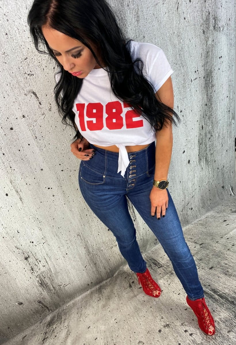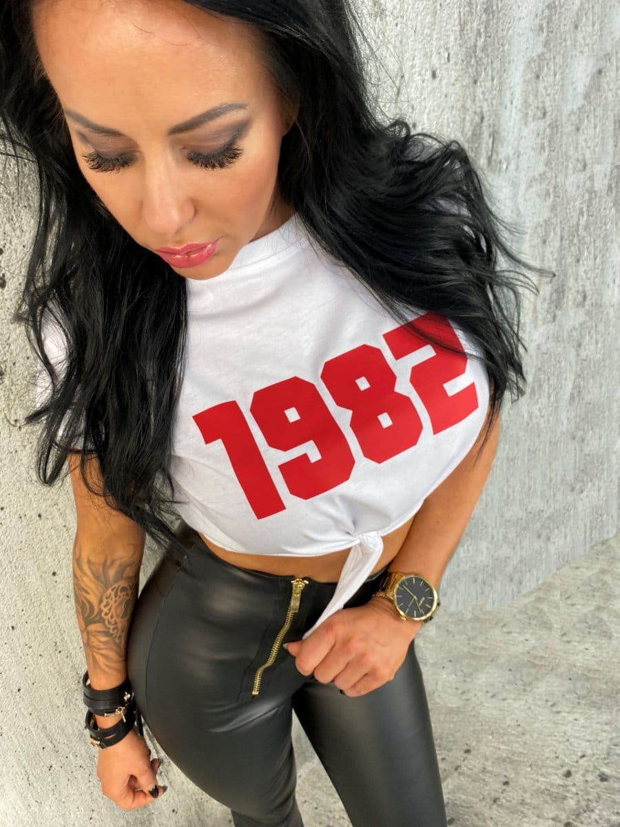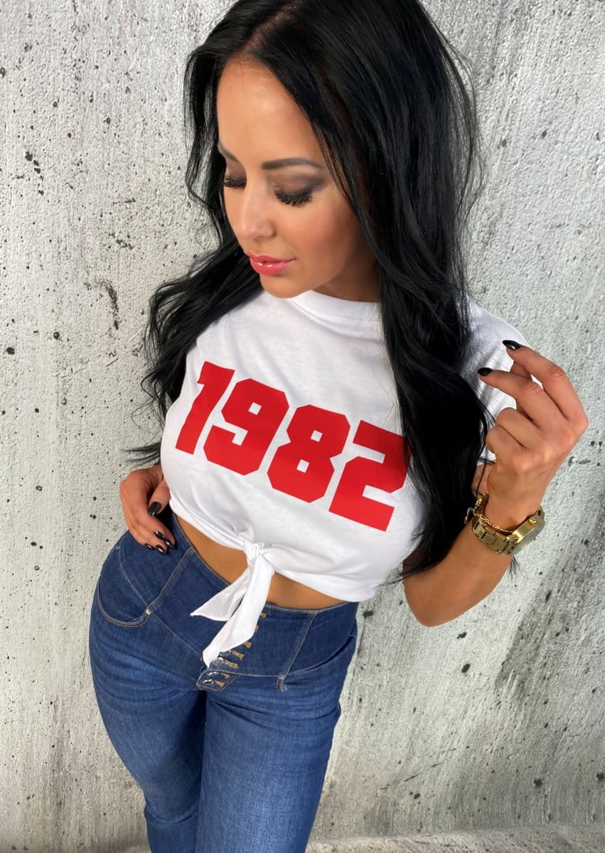 • Wiązany luźniejszy t-shirt z Twoim indywidualnym numerem-rocznikiem